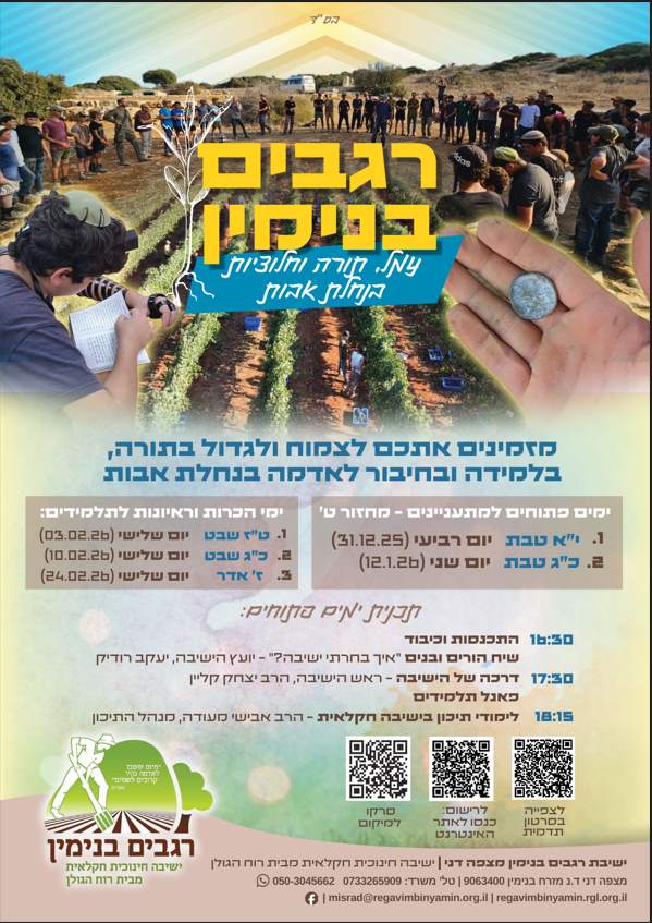 18:15 לימודי תיכון בישיבה חקלאית - עם הרב אבישי מעודה מנהל התיכון.